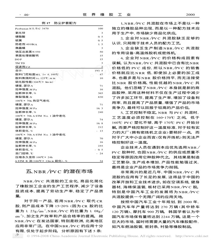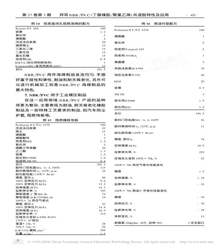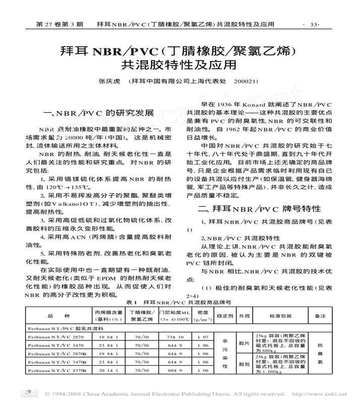 拜耳NBR/PVC(丁腈橡膠/聚氯乙烯)共混膠特性及應用